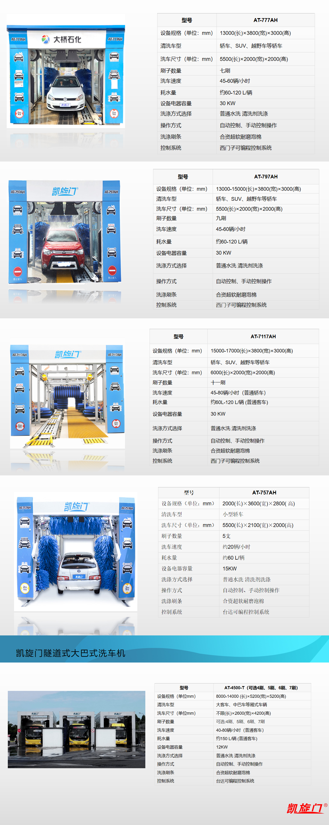 ? ? 凱旋門(mén)AT-797AH隧道式洗車(chē)機九刷結構,帶吹干凱旋門(mén)隧道式洗車(chē)機,本款設備能快速洗車(chē).